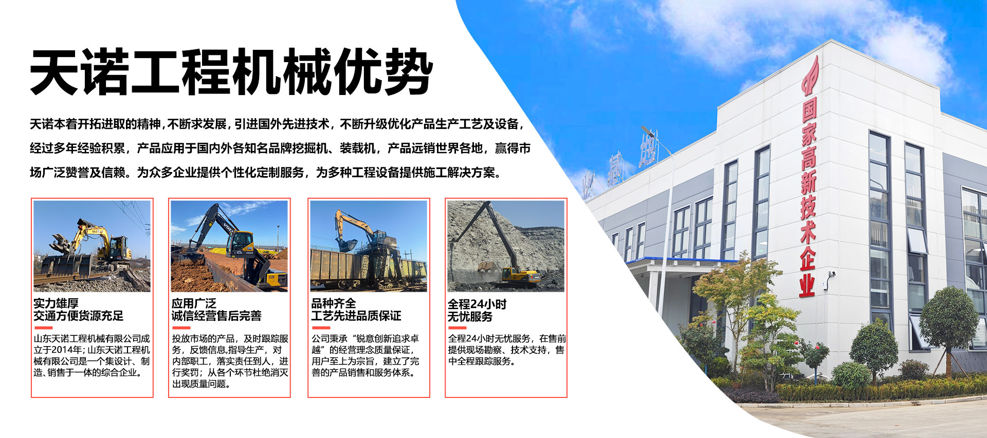 山東天諾工程機(jī)械有限公司成立于2014年;天諾工程機(jī)械是一個(gè)集設(shè)計(jì)、制造、銷售于一體的綜合企業(yè),生產(chǎn)產(chǎn)品適配各種工程機(jī)械設(shè)備,主要有:鐵路換枕機(jī)改裝,挖掘機(jī)升高底盤,挖掘機(jī)駕駛室升降,加長(zhǎng)臂、三節(jié)臂、打樁臂、巖石臂定制,多型號(hào)挖斗鏟斗定制,裝載機(jī)防滑履帶,多種類鐵路維護(hù)屬具等產(chǎn)品。